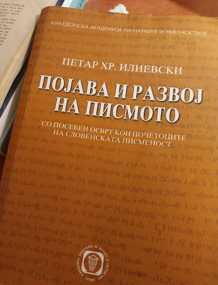 „Нашата најугледна палеославистка проф. д-р Радмила Угринова-Скаловска, од првата генерација студенти на акад. Блаже Конески, во учебникот по Старословенски јазик, од 1977 на стр. 24, во рамките на лекцијата за старословенското писмо вели: ‘Ако се прифати претпоставката, тргнувајќи од нејзината старина, дека глаголицата ја составил Константин-Кирил, останува нерешено прашањето кој ја составил кирилицата. Во славистичката наука се правеле и сè уште се прават различни претпоставки за нејзиниот автор: дека ја составил Методија, Климент, Црноризец Храбар, цар Симеон и др. Најверојатен е фактот дека таа најнапред се појавила во источна Бугарија, во книжевниот круг во Преслав, престолнината на тогашното бугарско царство, најмногу педесетина години по изнаоѓањето на глаголицата. На тоа особено укажуваат натписите со грчко, односно кирилско писмо („без устроенија“ како што вели Црноризец Храбар), изнајдени во поново време при археолошките ископувања во Преслав во тркалезната црква на Симеон, во кои за специфичните словенски гласови се употребени знаци од глаголицата, а за оние што ги има и во грчкиот гласовен систем, букви од грчкото уставно писмо“, објаснува професорката Јачева-Улчар.