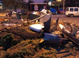 А и да беа празни контејнерите, не фрла народ во нив помали предмети, демек си мислат дека добро дело прават, можеби некому нешто ќе му затреба и ќе го земе за дома. Ама, ретко кој денеска нешто зема вакво, освен ако не е железо, па да го продаде на кило. И ете, врз гранките донесени деновиве тука, а собирани по неколкуте невремиња, кои којзнае дали некогаш ќе бидат тргнати, тука има изложба на неупотребливото.