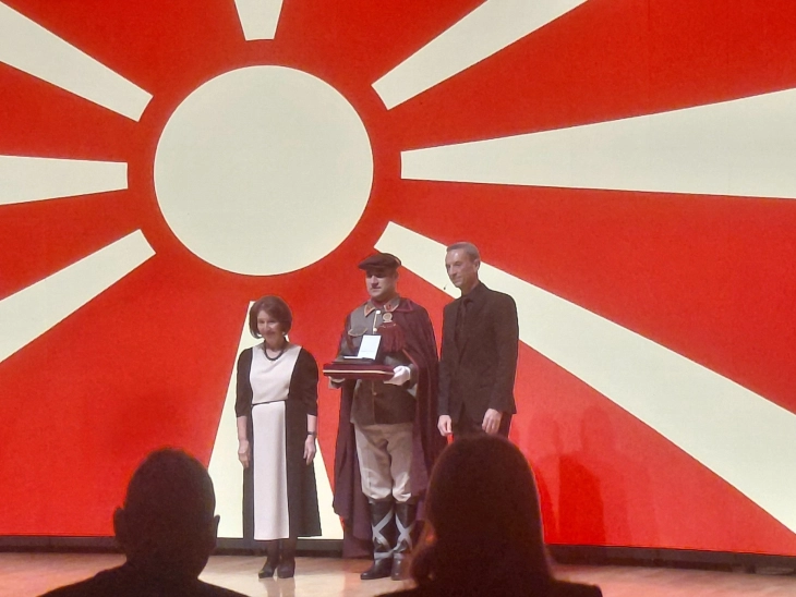 На доделувањето на орденот, вечерва во Македонската филхармонија, присуствуваа премиерот Христијан Мицкоски и министри од Владата, градоначалници, академици и голем број личности од општествениот живот.