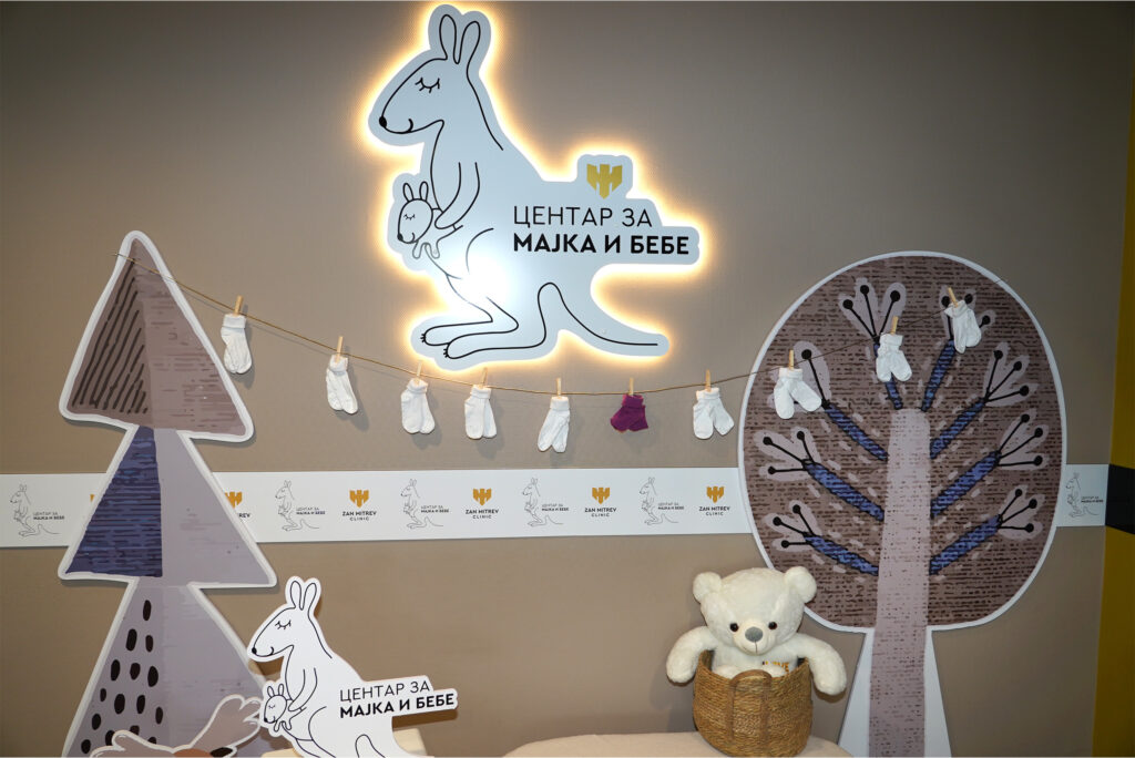Неодамна во клиниката се отвори Центарот за мајка и бебе и досега, природно и со царски рез се родени 5 бебиња. Центарот за мајка и бебе, располага со најсовремената опрема од врвни светски производители и искусен медицински тим кои се на располагање во секое време за грижа за мајката и бебето во сите фази од бременоста и по неа.