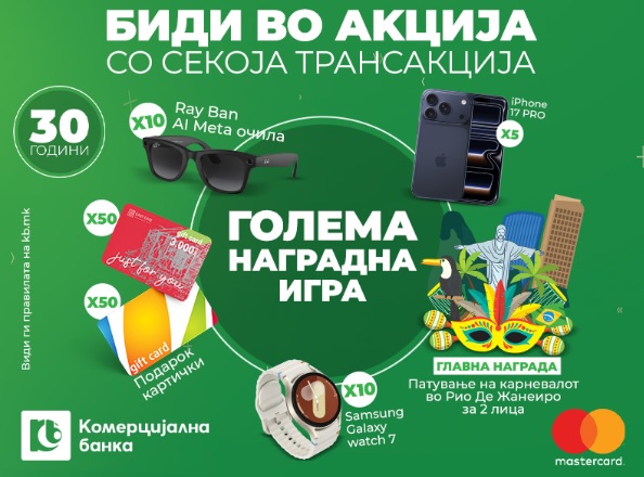 Претстојните празници сега стануваат уште повесели и повозбудливи со наградната игра на Комерцијална банка, која трае до 15 јануари 2026 година.