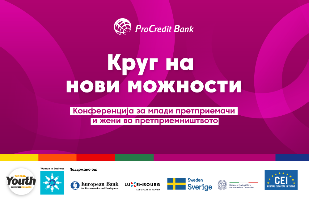 Во рамки на конференцијата присутните ќе имаат можност да се запознаат со финансиските поволностите за жени претприемачи и млади претприемачи кои се дел од новите бизнис пакети на Прокредит банка.