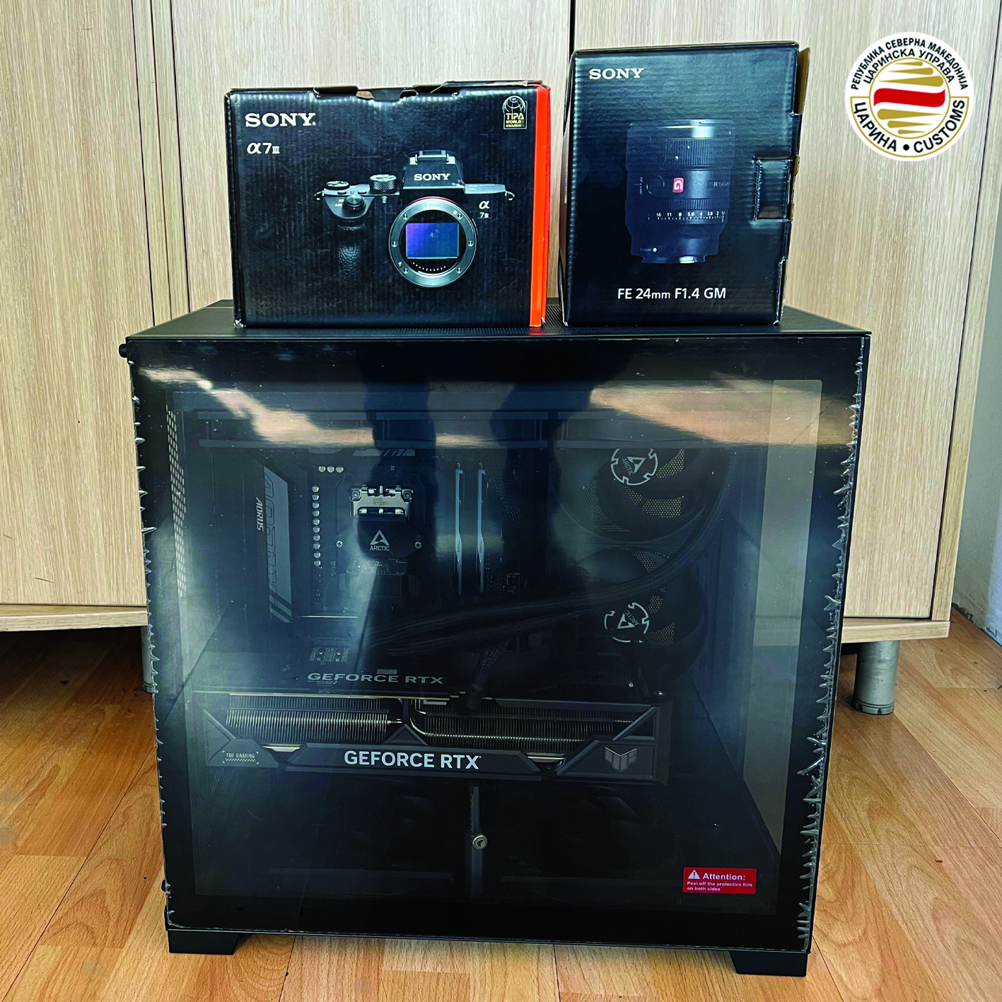 Царинската управа информира и за заплена на фотоапарат SONY A7III со објектив SONY FE24 MM F1.8GM и компјутер за видео-игри AORUS, со вкупна вредност од 345 илјади денари кои се пронајдени на задното седиште на автомобил со македонски таблички со кој македонски државјанин се пријавил за влез во државата на граничниот премин Табановце. Лицето сакало да ги шверцува во државата без да плати давачки во износ од 57 илјади денари. Против него ќе биде поднесена соодветна пријава.
