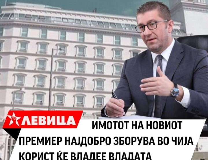 „Премиерот Мицкоски е оттуѓен од проблемите на обичниот Македонец, кој секојдневно преживува додека неговите владари се луксузираат. Тоа го покажува имотот што го пријавил како личен во Анкетниот лист, според кој, доколку се погледне, веднаш може да се забележи дека новиот премиер, Христијан Мицкоски, е сосема друга, непозната класа од онаа на која припаѓа огромниот дел македонски граѓани – сиромашната.