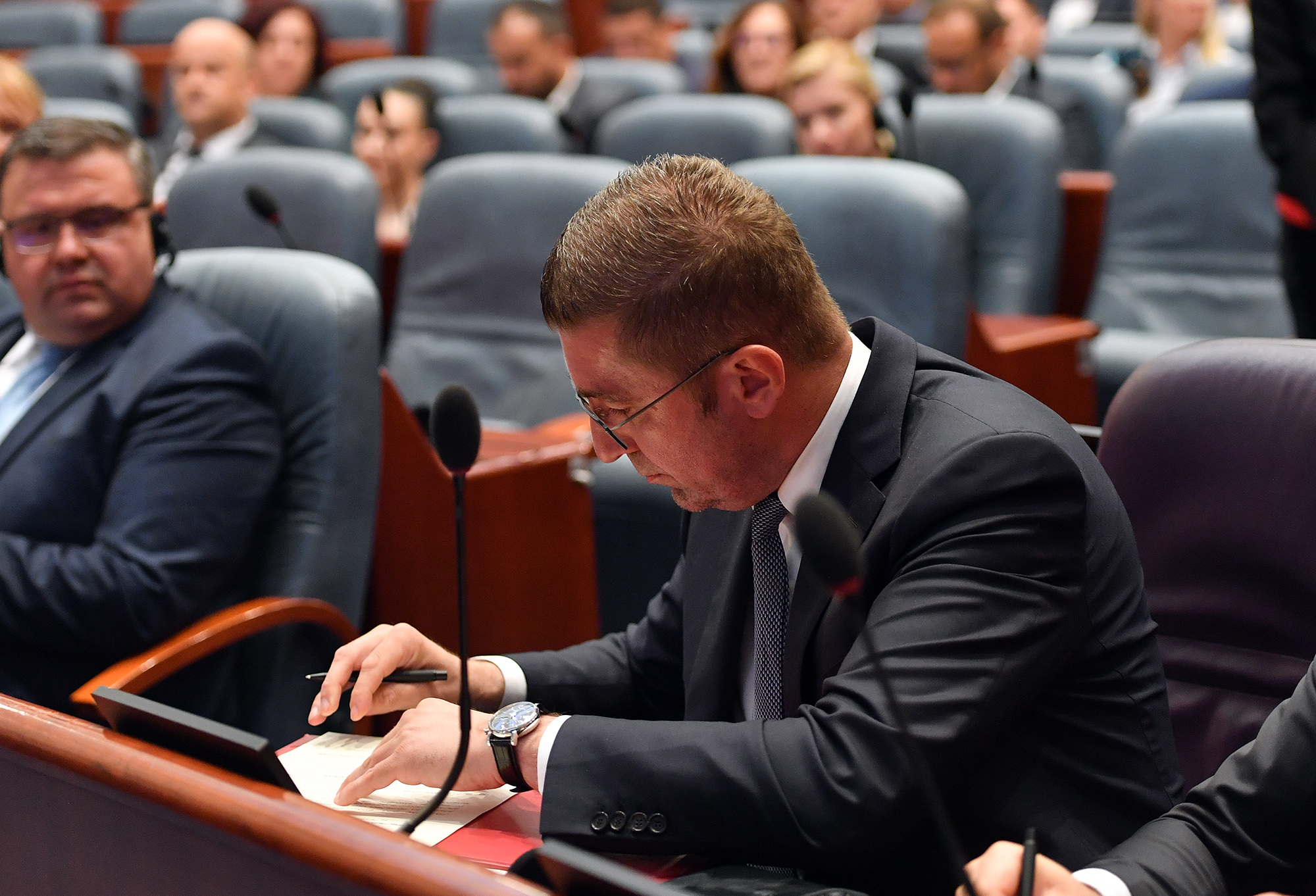 Во моментот на гласање на новата Влада пратениците на Европскиот фронт ја напуштија салата и не учествуваа во гласањето.