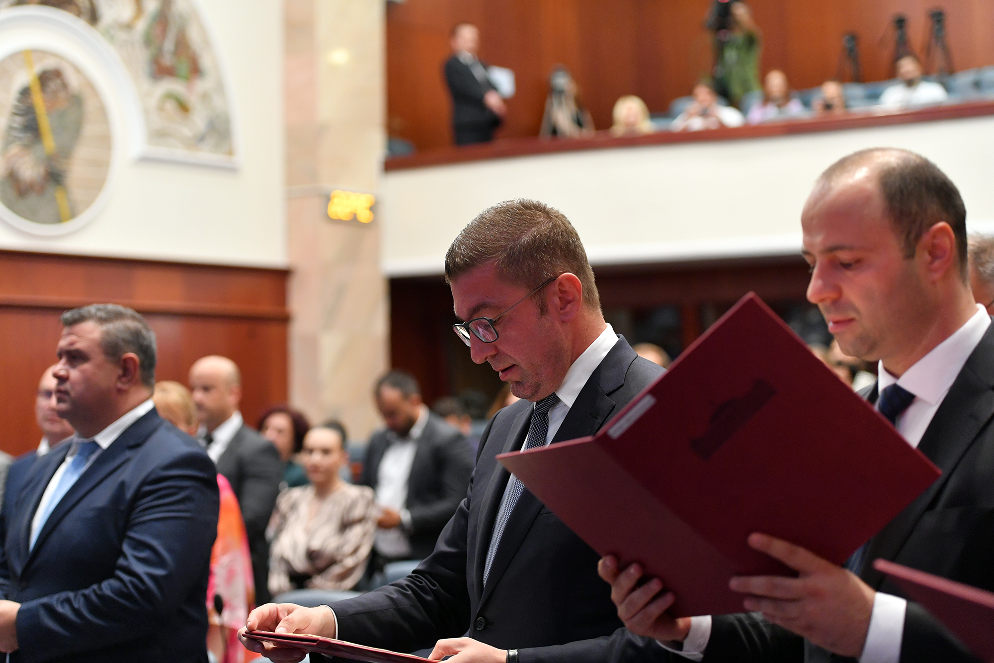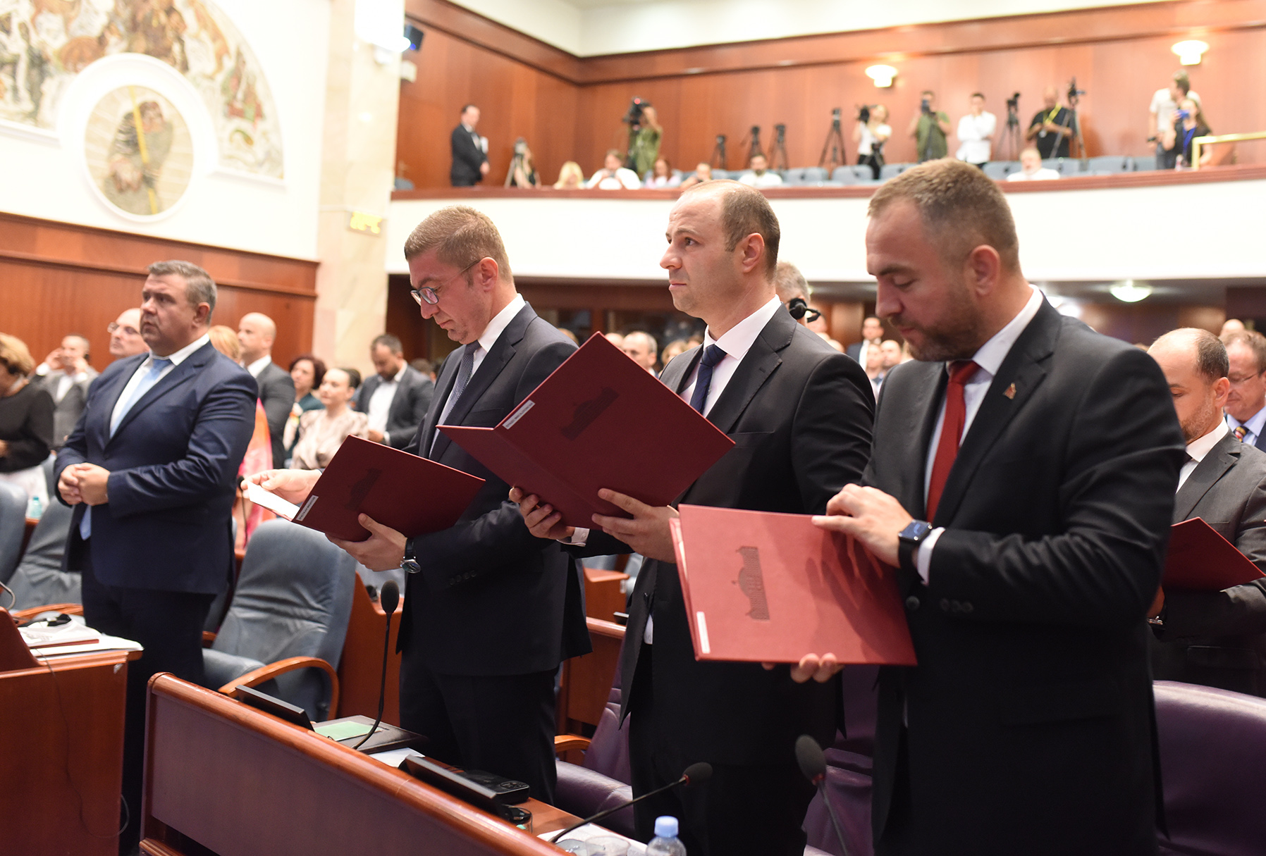 По синоќешното изгласувањето од страна на пратениците Мицкоски и министрите дадоа свечена изјава со што и официјално беше донесен новиот владин состав.