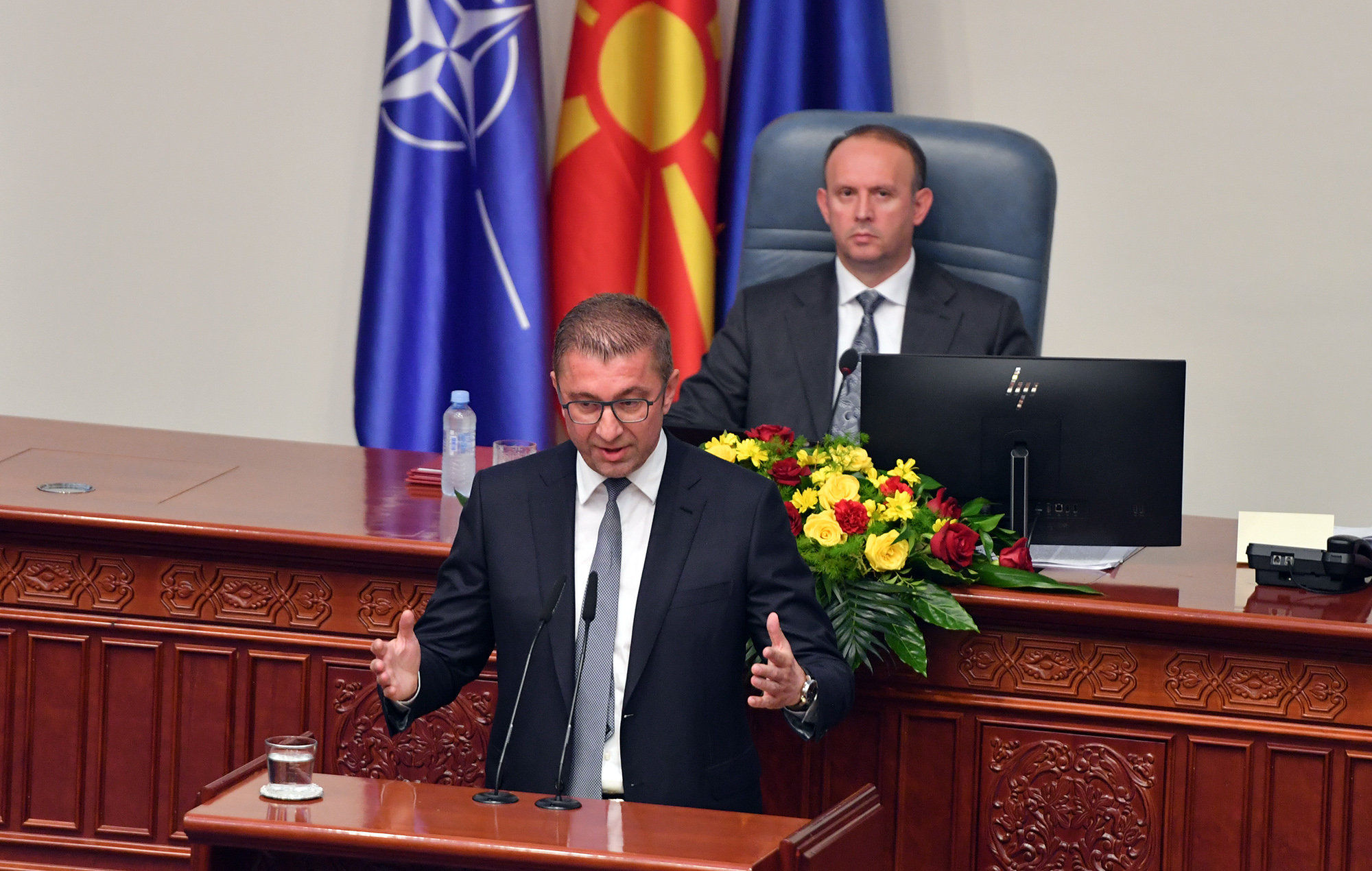 По вчерашното гласање, Мицкоски е новиот премиер на Македонија. Новоизбраниот премиер Христијан Мицкоски во својот говор пред гласањето за Владата рече дека нападите што ги слуша овие два дена се сведуваат на две тези – Преспанскиот договор и Францускиот предлог.