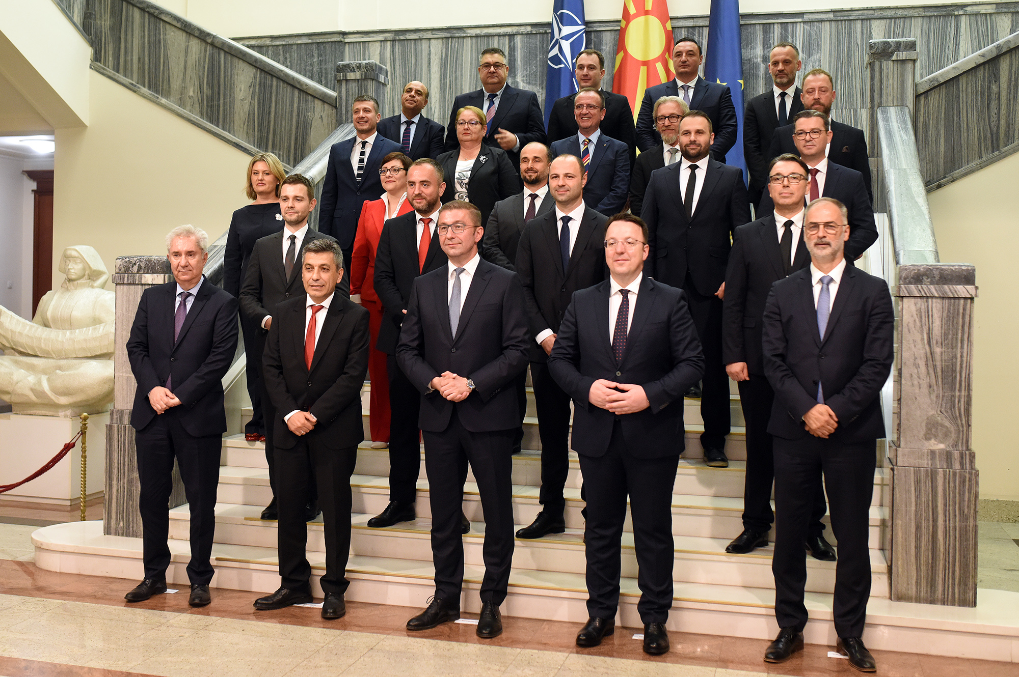 Во новата влада се министри од ВМРО-ДПМНЕ, коалицијата Вреди и од партијата ЗНАМ. Оваа влада ќе има 24 министри – министер за внатрешни работи е Панче Тошковски, за одбрана Владо Мисајловски, за надворешни работи и надворешна трговија Тимчо Муцуски, за финансии Гордана Кочоска Димитриеска, заменик претседател на Владата и министер за транспорт Александар Николоски, за информатичко општество и дигитална трансформација Стефан Андоновски, министер за локална самоуправа Златко Перински. Министерка во новоформираното Министерство за енергетика, рударство и минерални суровини е Сања Божиновска, во земјоделство, шумарство и водостопанство Цветан Трипуновски, министерка за образование и наука е Весна Јаневска, министер за култура и туризам е Зоран Љутков, а министер за спорт Борко Ристовски. Љупчо Димовски е вицепремиер и министер за политички систем, а Иван Стоиљковиќ, вицепремиер задолжен за односи со заедниците, додека Шабан Салиу е министер без ресор задолжен за интеграција и имплементација на декадата на Ромите. Министер за животна средина и просторно планирање и заменик претседател на Владата е Изет Меџити, министер без ресор и заменик претседател на Владата задолжен за добро владеење е Арбен Фетаи, министер за здравство Арбен Таравари, Орхан Муртезани е избран за министер за европски прашања, додека за министер за социјална политика, демографија и млади Фатмир Лимани, а министер за економија е Бесар Дурмиши. Игор Филков е новиот министер за правда, а Горан Минчев за министер за јавна администрација.