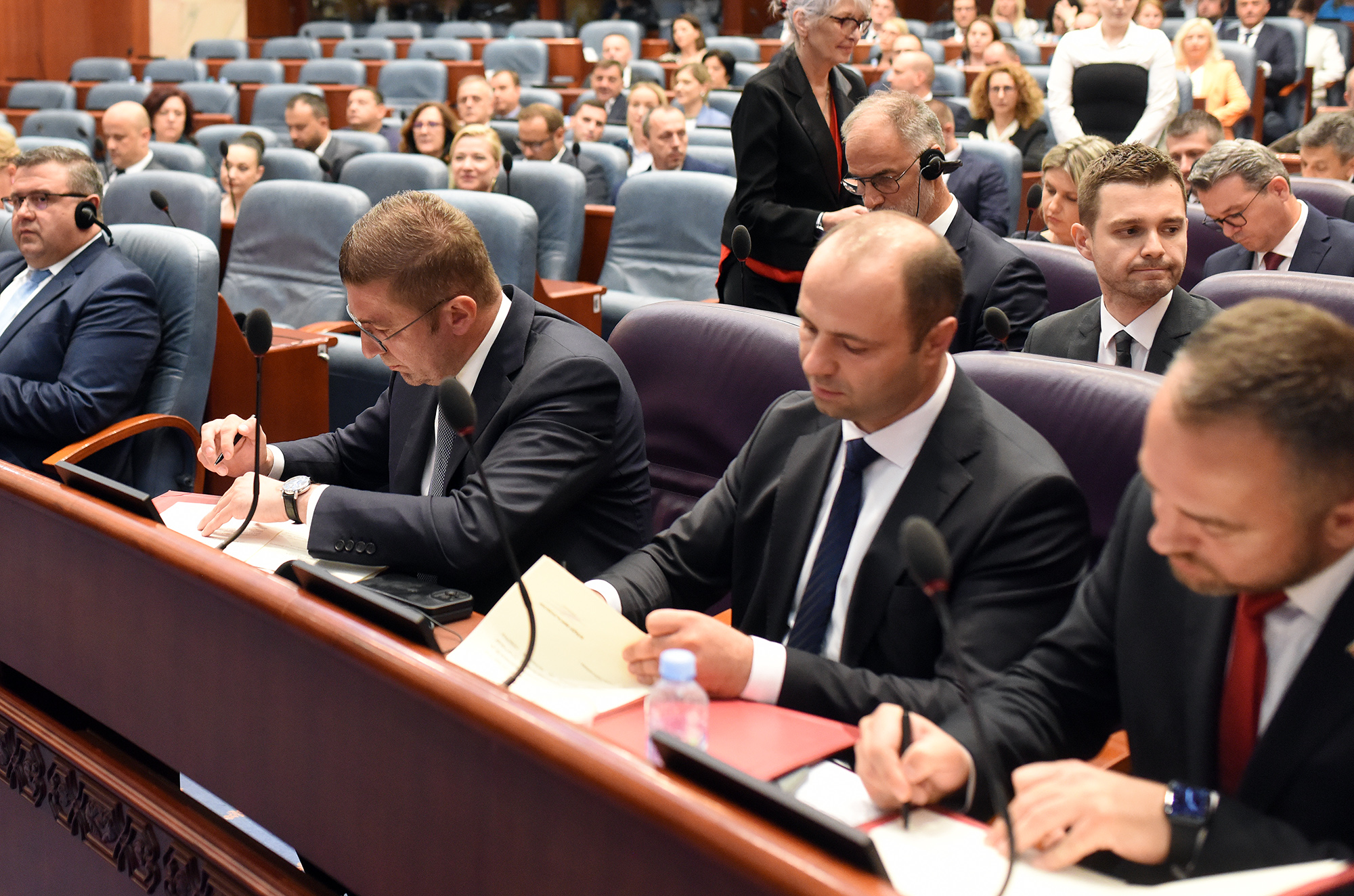 Во моментот на гласање на новата Влада пратениците на Европскиот фронт ја напуштија салата и не учествуваа во гласањето.
