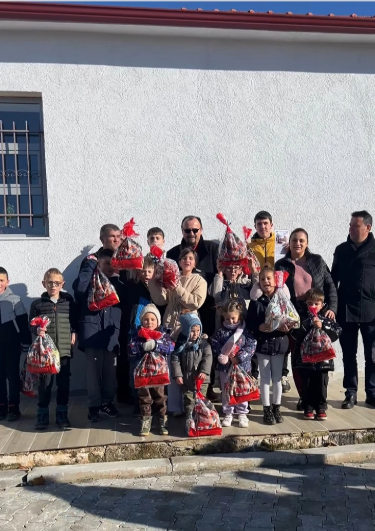 „Денеска ги посетивме Туминец и Горна Горица, каде со многу љубов им поделивме пакетчиња на децата и календари со знакот на ВМРО-ДПМНЕ Албанија. Насмеани лица, топли прегратки и извикување ‘Среќна Нова година!’– тоа е нашата сила“, напиша Темелко на Фејсбук.