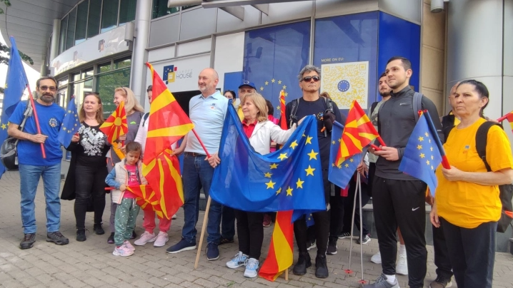 Маршот започна утрово пред седиштето на ЕУ, каде се изврши размена на македонското и европското знаме.