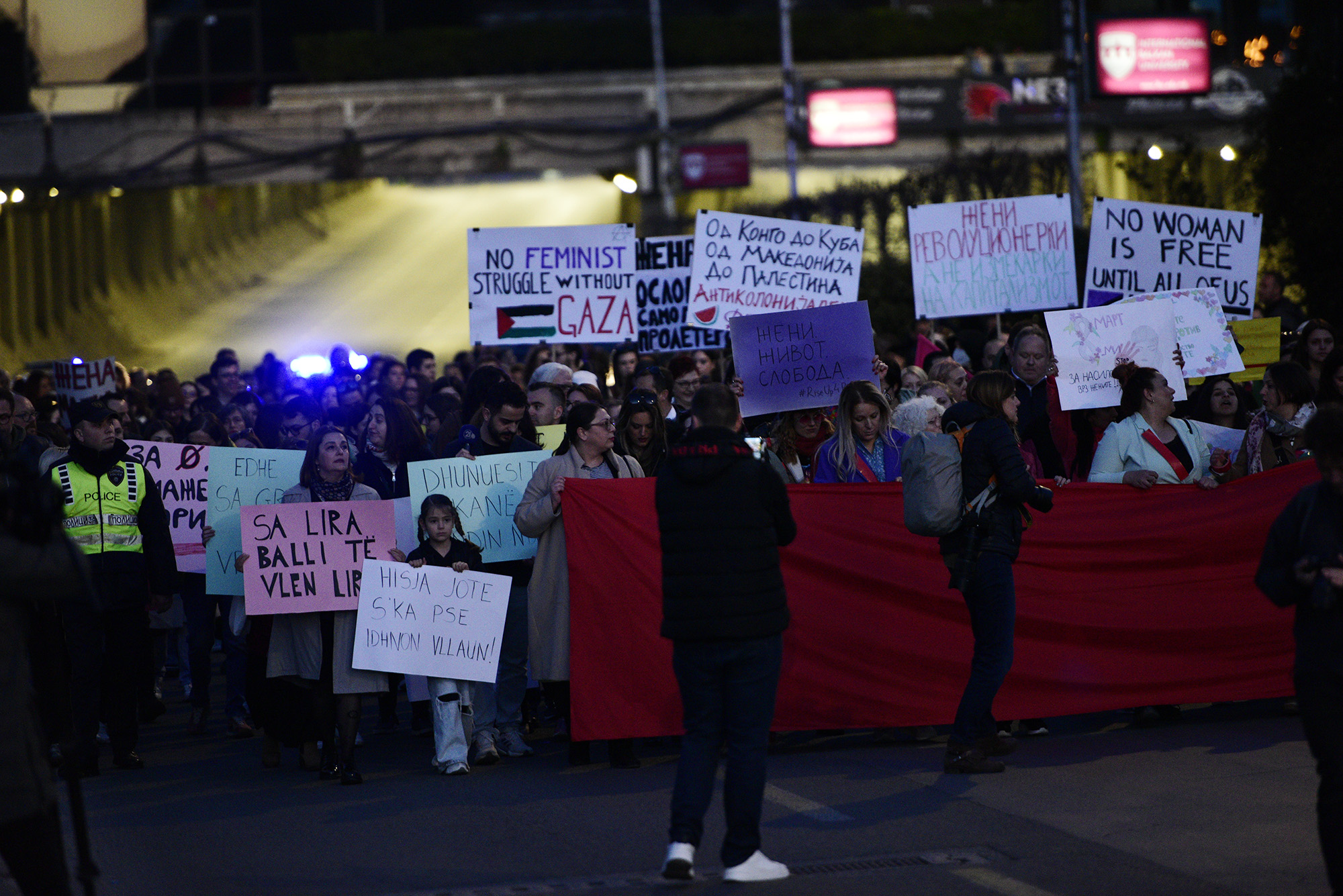 „Денешниот марш е за еднаквост и рамноправност кон сите жени, за сите еднакви плати и еднакви можности за вработување, за подобри здравствени услуги, за општество во кое што нема да се негува култура на насилство“, рече таа.