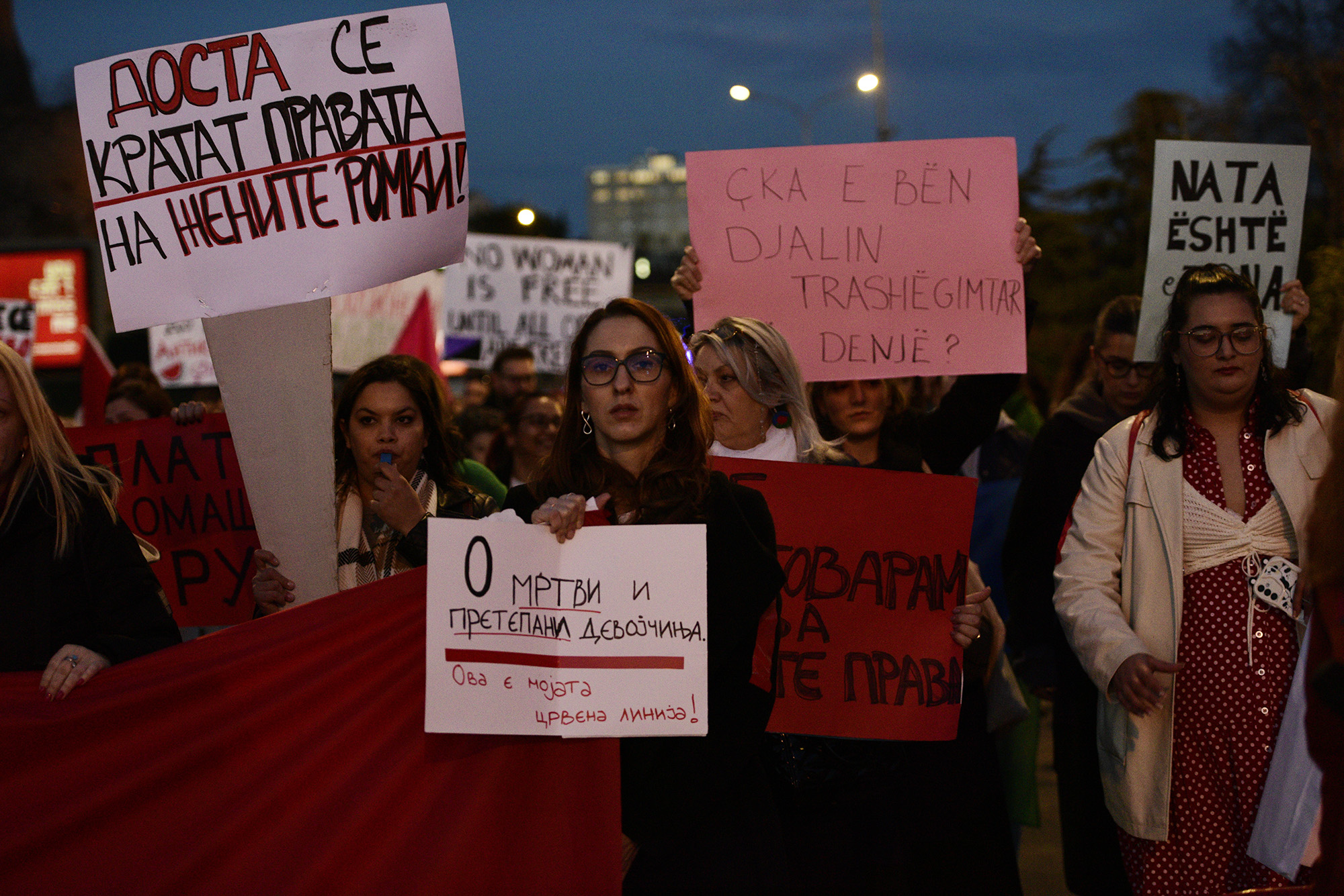 Црвените линии на Ана Аврамовска Нушкова од Национална мрежа Национална мрежа против насилство врз жените и семејно насилство, учесничка на маршот се за општество кое препознава насилство, нула силувани жени, за сите насилници да одат во затвор и да бидат правилно санкционирани.
