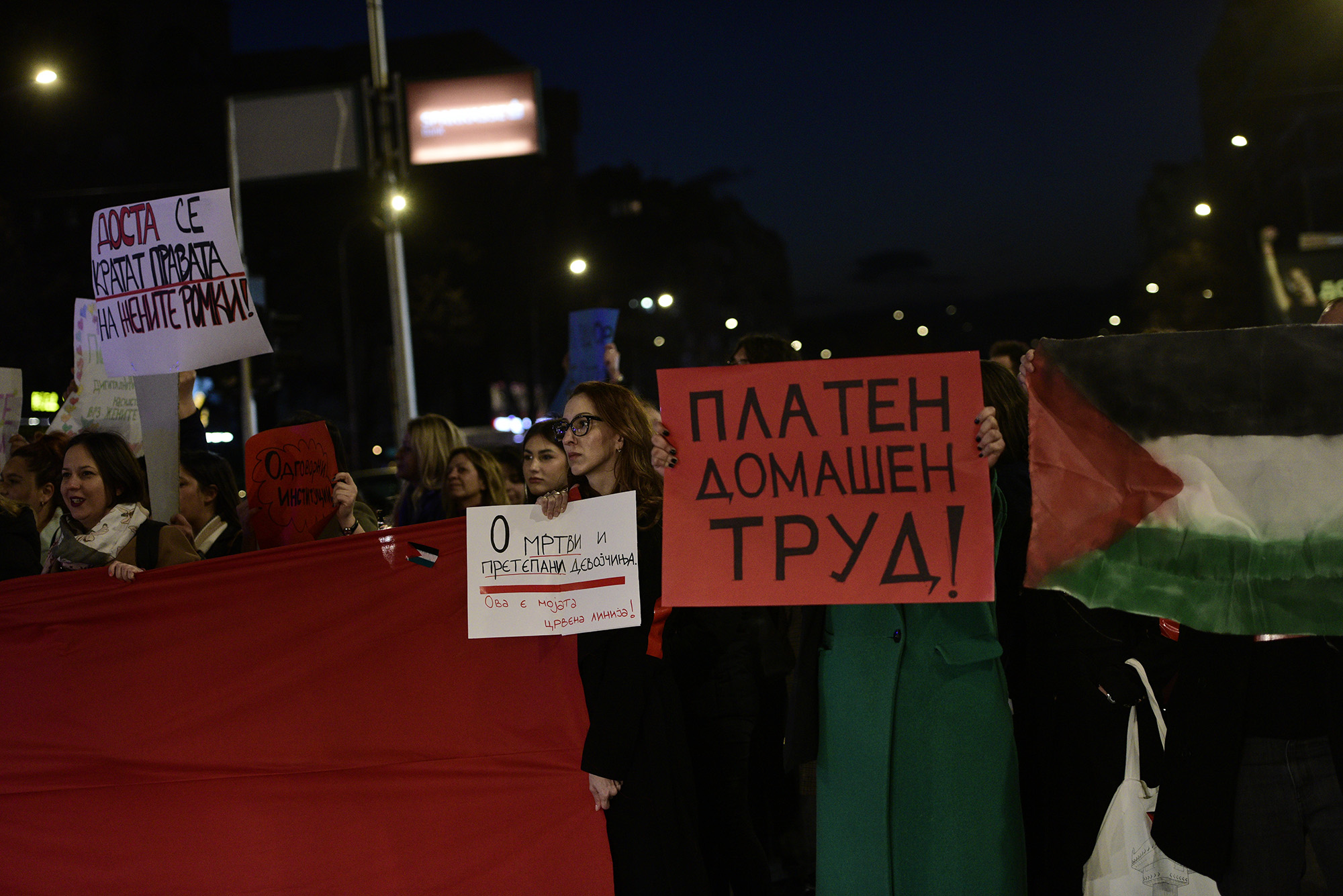 Осумте црвени линии кои ги подвлече маршот кој беше организиран од Платформата за родова еднаквост, денеска беа барања за неограничен пристап до безбеден и легален медицински абортус во секоја општина, еднаква плата за еднаква работа и еднакви плати меѓу мажите и жените, постапување со должно внимание на институции задолжени за превенирање и заштита од родово базирано насилство, трансформација на статусот на жените работнички во културата кои што се соочуваат со неизвесност во однос на нивниот работен статус со години наназад, 50 проценти застапеност на жените на позициите на моќ да стане реалност, систематско решение за пристап до платено породилно отсуство и боледување за жените земјоделки, акција за жените работнички и обезбедена грижа за нивните деца и борба против мито и корупција.