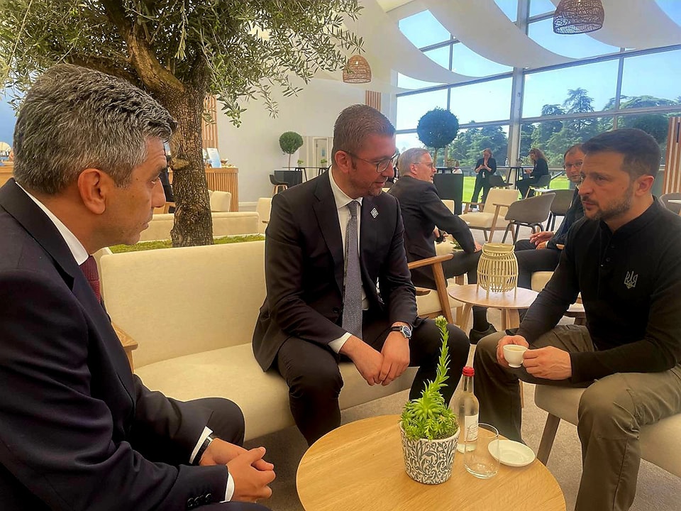 Во рамки на самитот на Европската политичка заедница во Лондон премиерот и вицепремиерот на Македонија, Христијан Мицкоски и Изет Меџити остварија кратка средба со Претседателот на Украина, Володимир Зеленски. На средбата, како што напиша Мицкоски на својот фејбук-профил, „ја потенцирав недвосмислената поддршка на Македонија кон Украина и украинскиот народ и посочив дека и во иднина можат да сметаат на нашето пријателство.