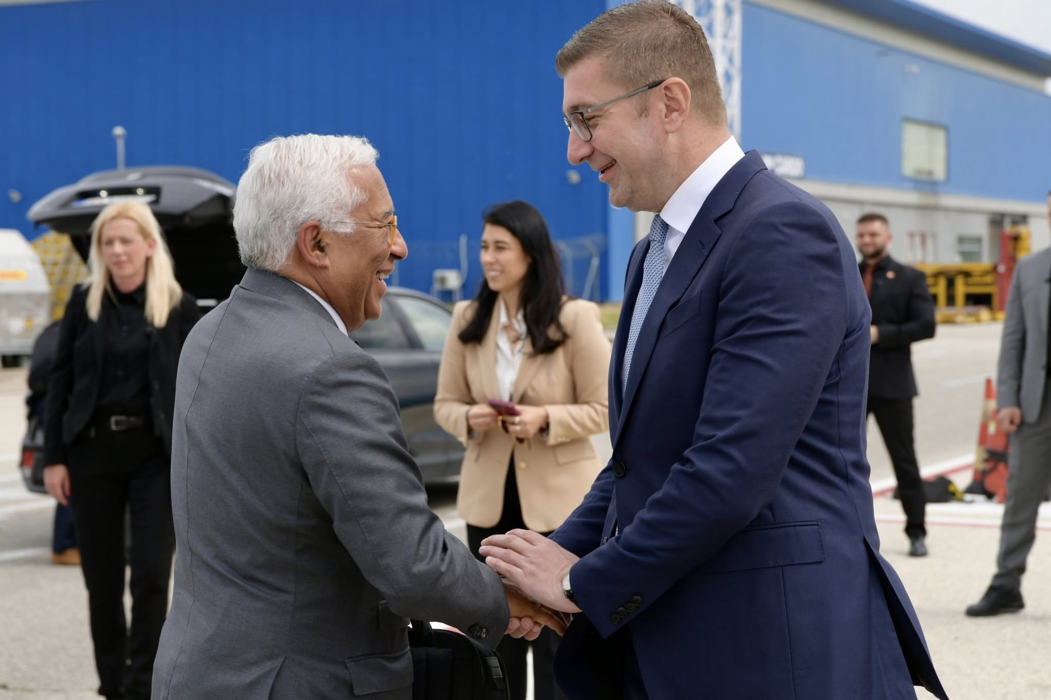 „Со претседателот на Европскиот совет, Антонио Кошта патуваме во Тирана, на самитот на Европската политичка заедница, каде имам средба со премиерот на Обединетото Кралство, Кир Стармер со добри вести за Македонија“, напиша Мицкоски на Фејсбук..