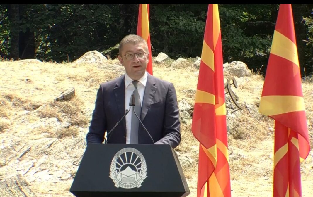 „Заедно се боревме во Илинден и заедно ќе ја изградиме новата и силна Македонија. Нашата сила е во нашата различност и нашето единство. Само заедно можеме да изградиме заеднички светилник во темнината. Илинден е нашата заедничка инспирација и нашиот најголем потсетник дека секоја генерација има своја борба. Како што нашите предци се бореа за слобода и правда, така и ние денес заедно се бориме за нашите идеали. Ова е нашата заклетва дека никогаш нема да се откажеме, дека секогаш ќе се бориме за нашата татковина, за нашите деца и за нашата заедничка иднина“, рече Мицкоски.