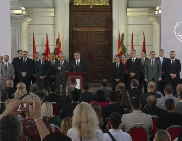 „Воедно сакам да се осврнам и на оние кои велат дека Македонија била понижена. Тоа се истите оние коишто сменија име, направија договор со Бугарија, кои ја пљачкаа и се потпишуваа на што било и сè што им беше поставено на маса. Нема никогаш повеќе нема да дозволам да биде понижена, зошто тоа време заврши“, категоричен беше Мицкоски..