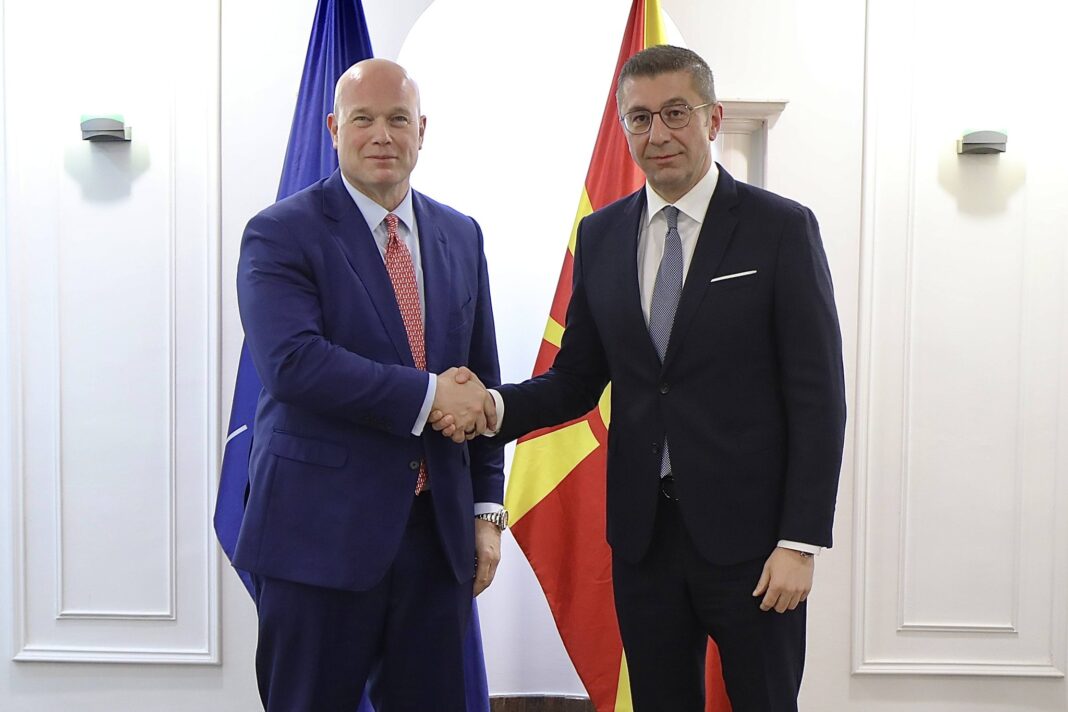 Премиерот на Македонија Христијан Мицкоски синоќа оствари средба со Метју Г. Витакер, постојан претставник на Соединетите Американски Држави (САД) при НАТО, на која се разговарало за зајакнување на соработката во рамки на Алијансата, како и за актуелните безбедносни предизвици и заедничките приоритети во насока на унапредување на регионалната и глобалната стабилност.