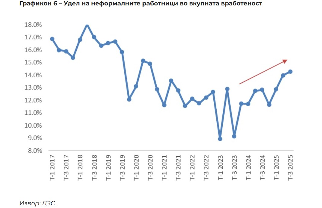 „Тоа би значело отсуство на писмен договор за вработување (целосно неформален работник) или осигурување на работникот на помалку работни часови од неговото фактичко работно време и исплата на остатокот преку т.н. плата во плико (делумно неформален работник). Оваа линија на прилагодување во услови на значаен пораст на минималната плата е многу веројатна, имајќи ја предвид тенденцијата на пораст на уделот на неформалните работници во последните неколку квартали. Овој тип на прилагодување е особено штетен затоа што ја поткопува и заштитата на работниците и приходната база на државата“, предупредуваат од Фајнанс тинк.