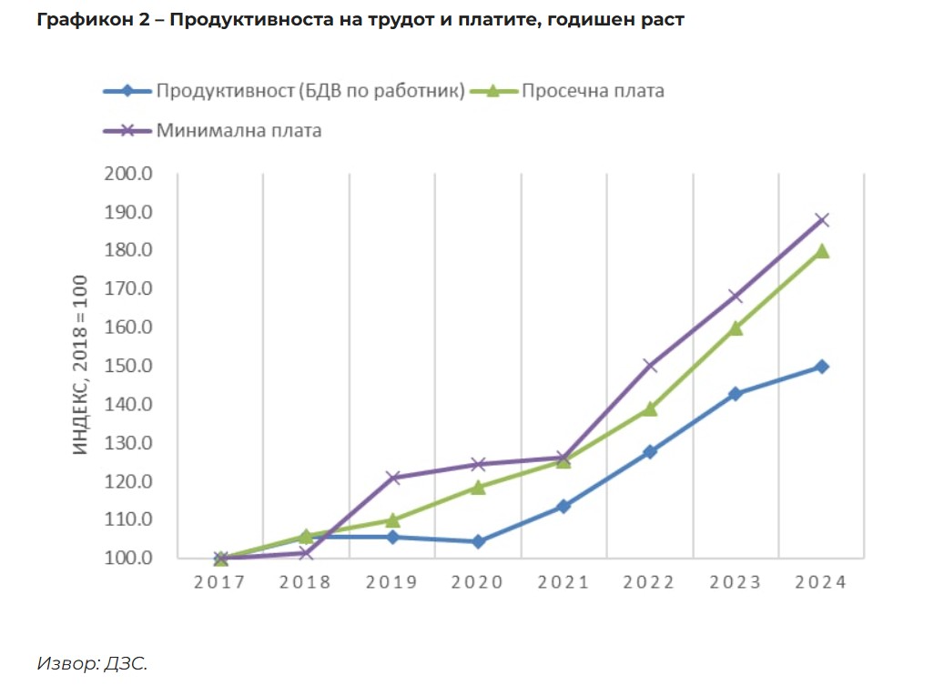 Од Институтот посочуваат дека упорната инфлација е резултат на повеќе фактори, при што најзначаен е растот на платите. Во периодот 2017–2024 година, просечната плата пораснала за 79,9 отсто, минималната плата за 88 отсто, додека продуктивноста на трудот се зголемила за 49,8 отсто, номинално. Оваа дивергенција, според институтот, е макроекономски неодржлива и директно создава ценовни притисоци.