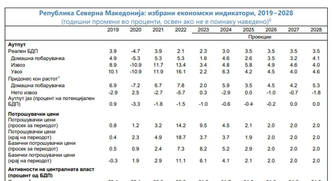 „Иако инфлацијата и понатаму претставува предизвик, таа значително се намали поради пониските цени на енергенсите и храната на глобално ниво, во комбинација со монетарното затегнување. Подобрениот надворешен трговски биланс, кој делумно се припишува на острото намалување на глобалните цени на енергијата, заедно со отпорните странски директни инвестиции, ги одржуваат девизните резерви на адекватно ниво. Банкарскиот сектор и понатаму е ликвиден, добро капитализиран, профитабилен, при што нефункционалните кредити се стабилни и се на историски најниско ниво“, посочуваат од ММФ.