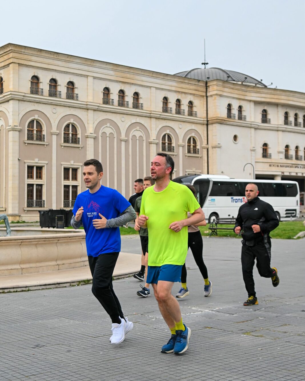 „Шест километри низ градот беа одлична можност, во неформална и спортска атмосфера, да споделиме дел од енергијата на Скопје и да ѝ ги приближиме на белгиската делегација препознатливите обележја на нашиот главен град“, напиша Муцунски на својот фејсбук-профил.