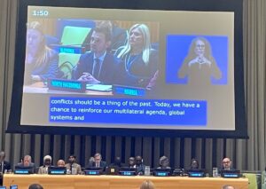 „Денес имаме уникатна шанса да ја зајакнеме нашата мултилатерална агенда и глобалните системи, прилагодувајќи ги на предизвиците со кои се соочуваме во областа на меѓународниот мир и безбедност. Утре веќе е наша сегашност, додал Муцунски.