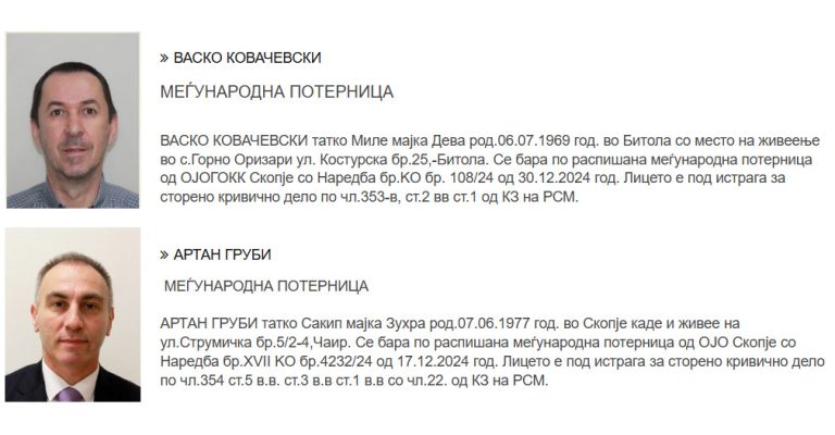 Потерницата е објавена на веб-страницата на МВР, веднаш над онаа за поранешниот вицепремиер, Артан Груби, кој пак се бара за криминал во Државна лотарија.