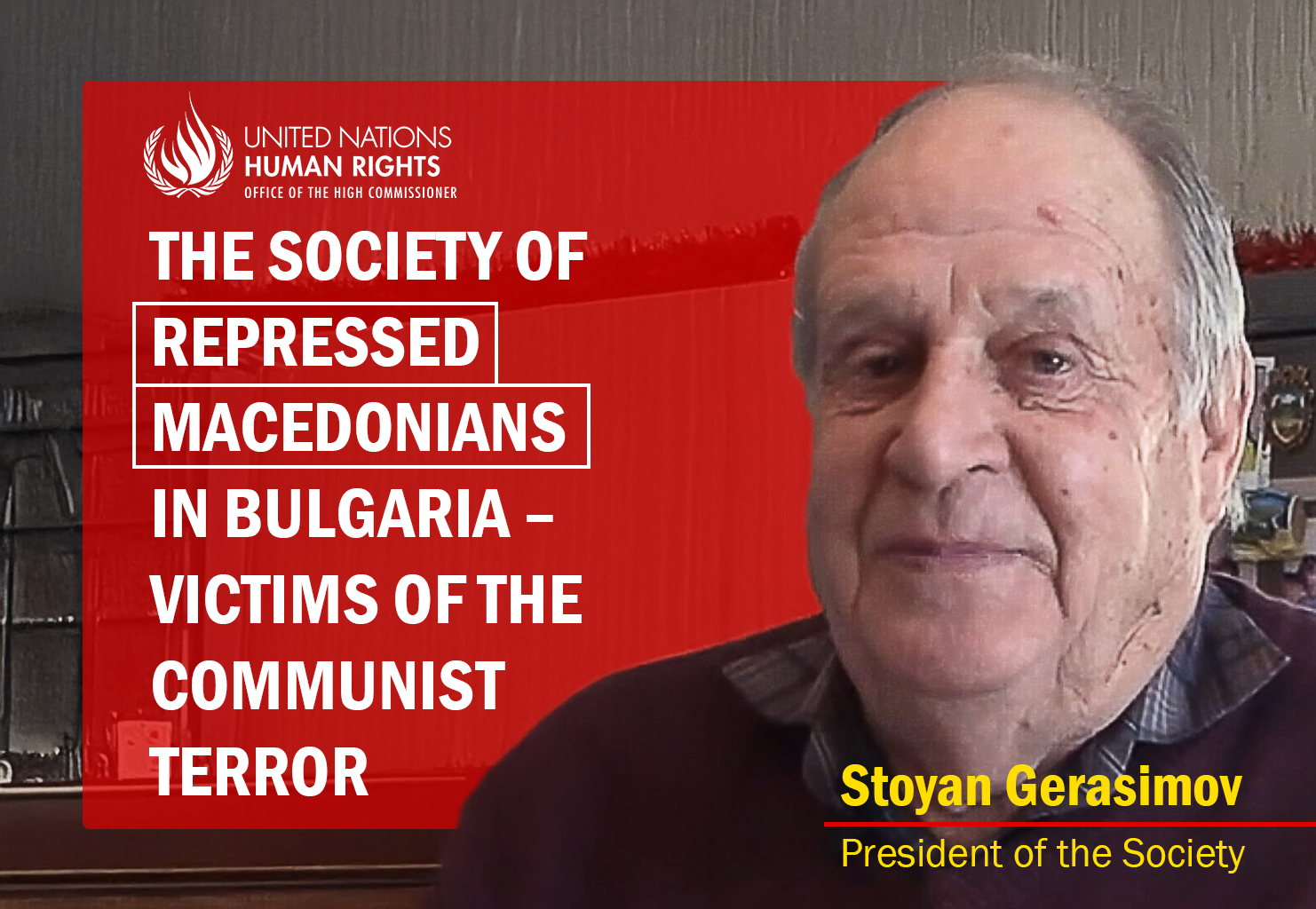 „Нелсон Мандела рече: ‘Никој навистина не познава една нација додека не влезе во нејзините затвори’, и оваа вистина одекнува кај луѓето што ги претставувам денес. Оваа организација е една од стотиците македонски организации на кои сè уште им се одбива регистрација во Бугарија. Нејзините членови се постари активисти чие репресирање започна во нивната младост. Во 1963 година, политиката на негирање на македонското малцинство беше првата во серијата ‘преродбени процеси’ насочени кон асимилација на малцинствата во ‘единствена бугарска социјалистичка нација’. Во овој период, македонските млади се спротивставуваа на овие агресивни асимилациски политики, формирајќи кружоци за проучување на својата историја, пеејќи забранети песни, слушајќи забранети радиостаници и пишувајќи слогани за Македонија на јавни места. Поради тоа беа истражувани од државната безбедност, затворани, следени, малтретирани и протерувани“, беше искажано за репресијата врз Македонците во Бугарија низ децениите, на Форумот за малцински прашања на Обединетите нации.