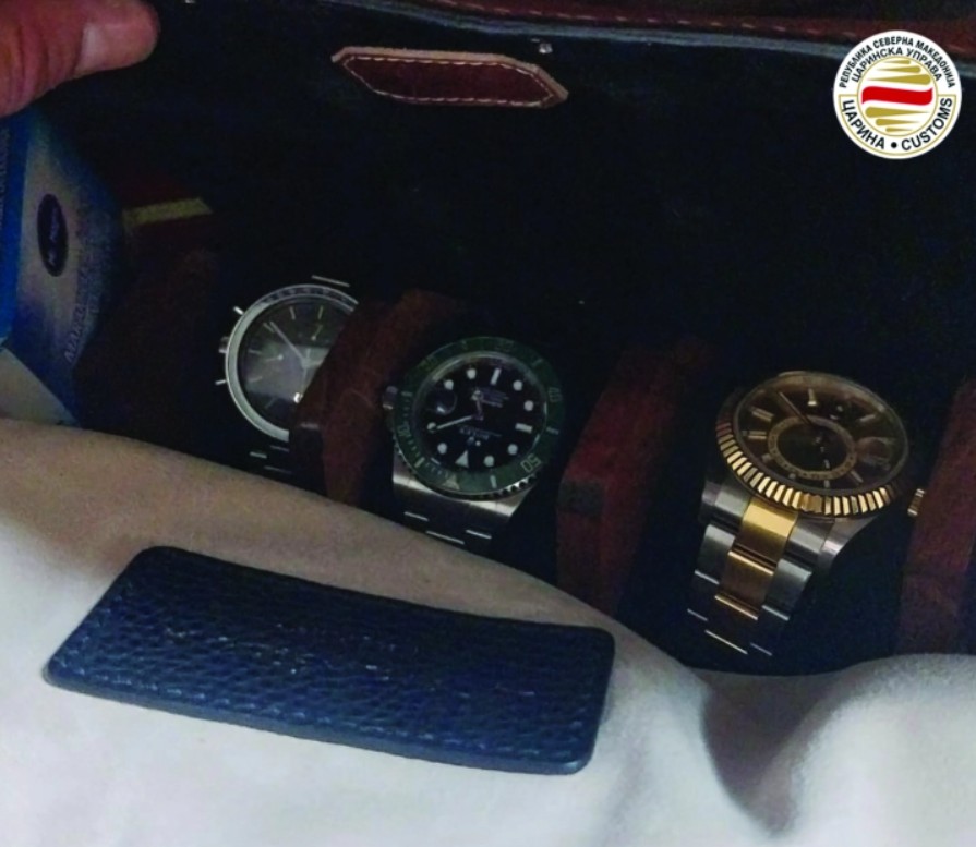 „Непријавените часовници се пронајдени при детален преглед на возилото и патниците кои патувале со автомобил со српски регистарски таблички. Возачот, со намера да ја избегне царинската контрола, ги ставил часовниците во една мала кожна кутија, која ја сместил во неговиот црн ранец заедно со други предмети за лична употреба“, информира Царината.