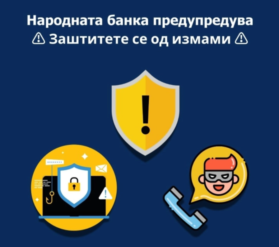 „Народната банка апелира до граѓаните да не откриваат лични податоци, ниту, пак, да преземаат активности на барање од непознати лица. Доколку имате добиено или ако во следниов период добиете неочекувани телефонски повици, е-пошта или СМС од сомнителни адреси или телефонски броеви во коишто ви се нуди нешто што не делува реално и вистинито, или ако од вас се бара откривање на личните податоци, не започнувајте комуникација во којашто ќе ги дадете вашите лични податоци или ќе одговорите на барање за трансакција/уплата на ваши средства на некоја банкарска сметка“, се вели во соопштението.