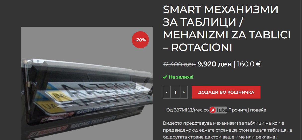 Резултатите од проверката на МКД.мк покажаа дека во Македонија само една фирма (Дог секјурити) јавно преку својата онлајн продавница продава вакви „паметни“ рамки за регистарски таблички. Има два вида. Првиот, каков што е прикажано на видеото се продава како смарт механизми за таблички со завеса и со попуст од 20 отсто се продаваат за 8.900 денари или за 144 евра.