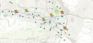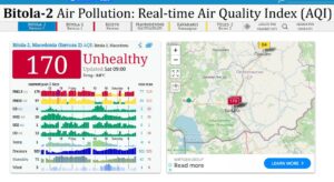 Интернет страницата waqi.info покажува дека најзагаден е воздухот во Битола, каде доминираат ПМ честичките, а особено најканцерогените ПМ2,5. Блиску според индексот на загаденост се и Струмица и Кичево.