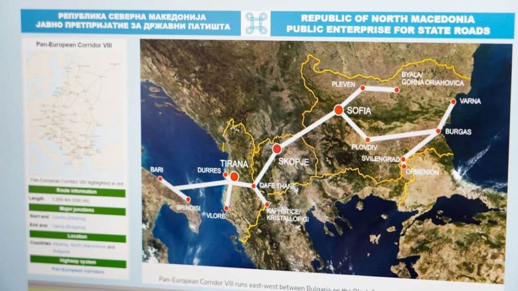 „Во моментот заедно со конзорциумот ‘Бехтел и Енка’ работиме на изградба на автопатите Тетово – Гостивар и Гостивар – Кичево, а исто така работиме на завршување на автопатот Охрид – Кичево. А во моментот сме во финална фаза на избор на изведувач за автопатот Кичево – Букојчани, уште една делница од Коридорот 8. Заедно со Европската Унија ќе работиме во рамките на планот за раст за изградба на експресен пат помеѓу Куманово и Страцин, што значи дека од границата со Албанија до границата со Бугарија треба да имаме автопатско решение или експресен пат. Исто така, ја завршивме и реконструкцијата на граничниот премин Ќафасан и се работи на проширување“, изјави Николоски.