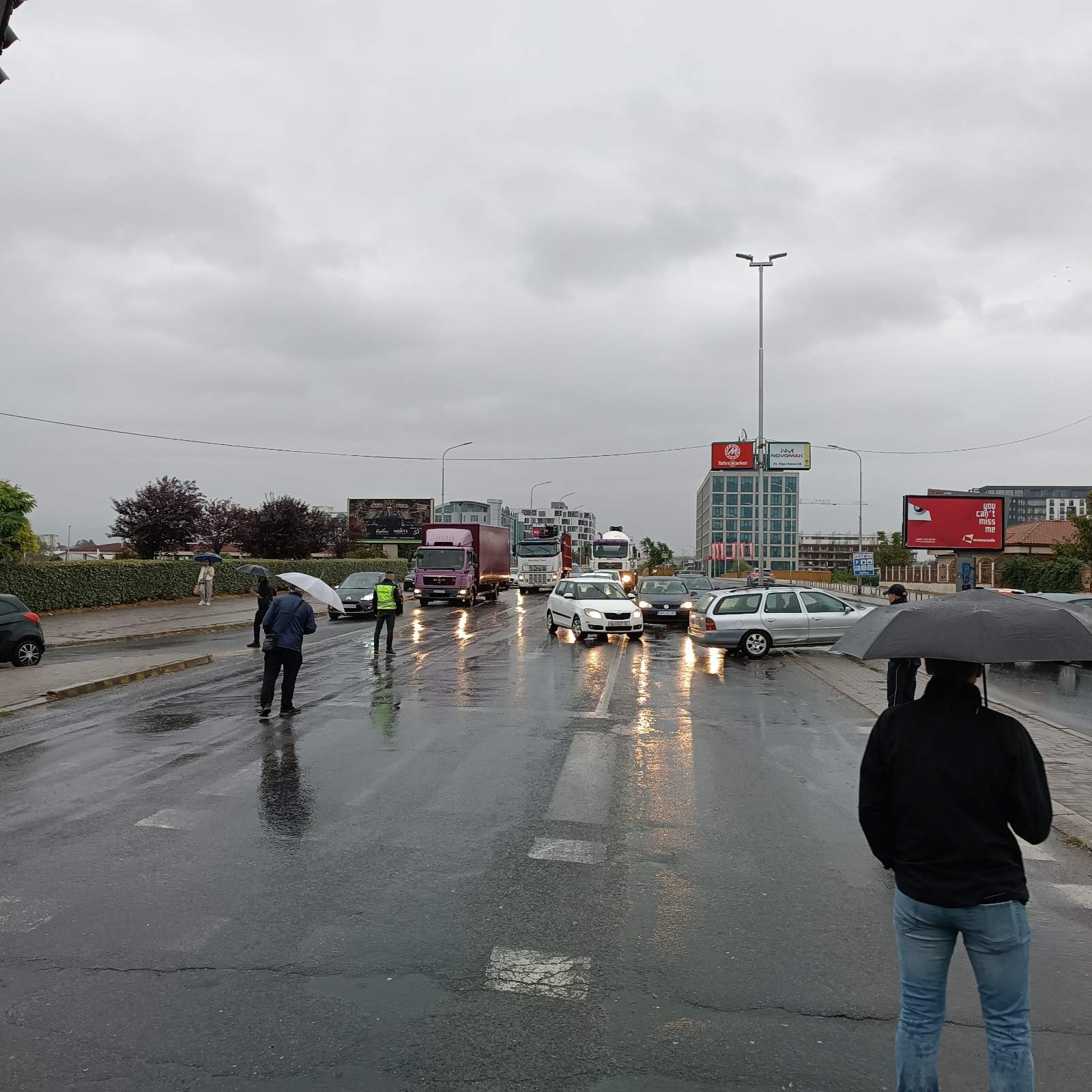 Полицијата која секој ден многу коректно и културно ги обезбедува протестите, во еден момент можеби направи пропуст, па преку мостот се појавија бројни автомобили и камиони.