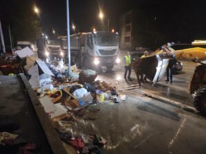 „Екипите на ЈП Комунална хигиена-Скопје во текот на минатата ноќ реализираа акција за отстранување обемна дива депонија лоцирана на булеварот Никола Карев (Пластичарска улица), на аголот со улицата Максут Садик, во непосредна близина на Амбасадата на САД.