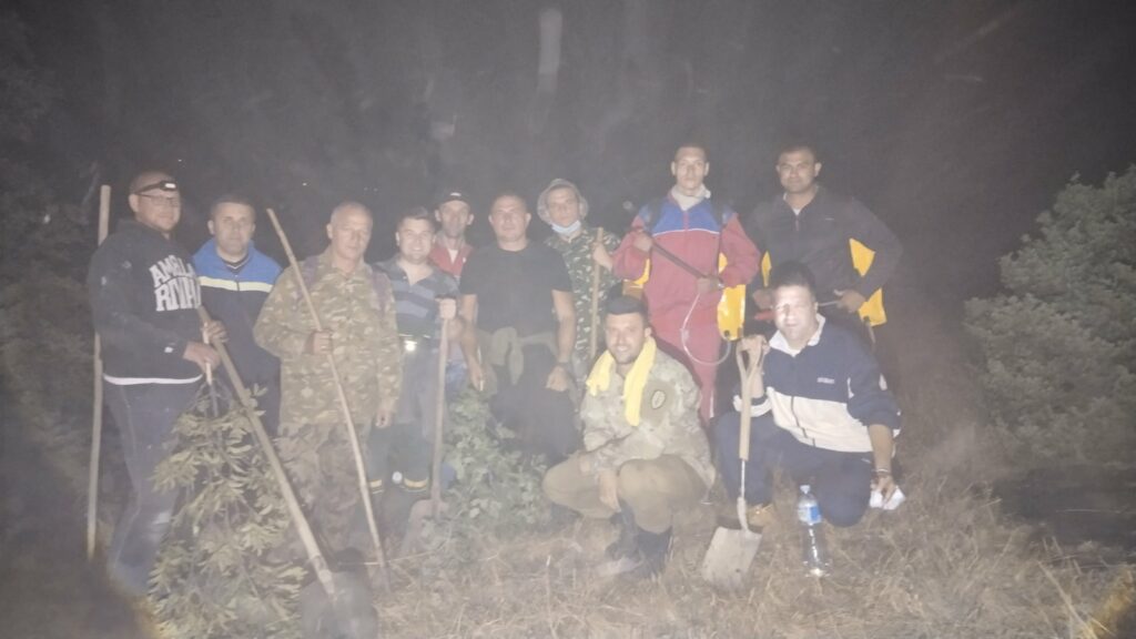 Околу полноќ се искачив до линијата на огнот високо над патот и откако лично се уверив дека ветерот е поволен, горењето ослабнато и има услови за ноќно гаснење од земја, со мојот возач и седум жители на Рогачево започнавме гаснење на огнената линија. Гаснењето се одвиваше во две фази, гаснење, контролирање и догаснување на изгаснатата линија. Некаде околу три часот по полноќ ја совладавме целата лева огнена линија во должина поголема од еден километар. Десната огнена линија беше далеку од нас и поради тешко пристапниот терен обраснат со густа вегетација полна со трње, не можевме да се пробиеме до неа.