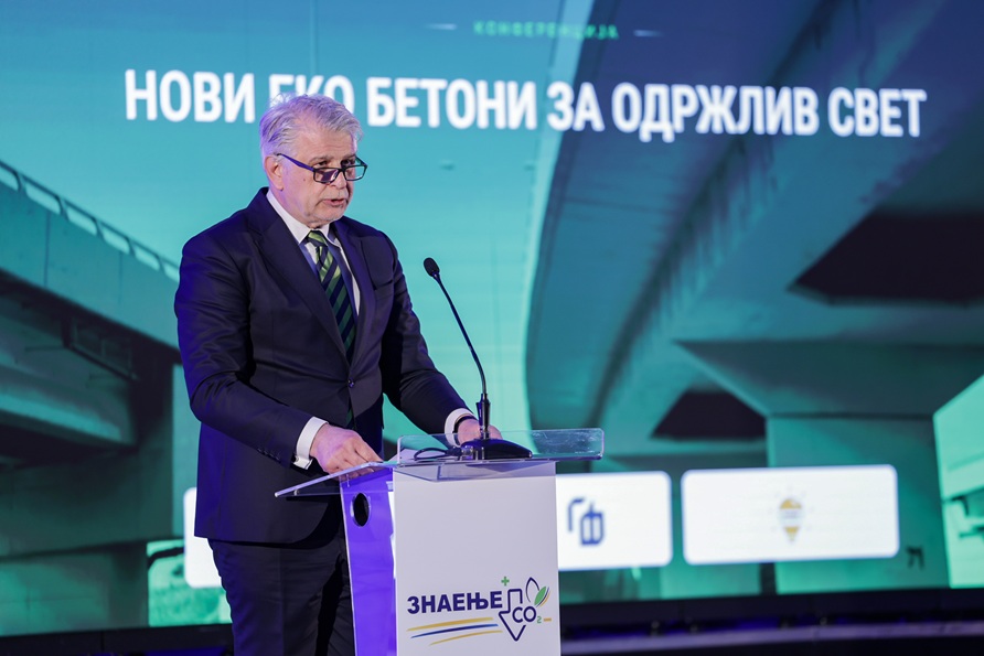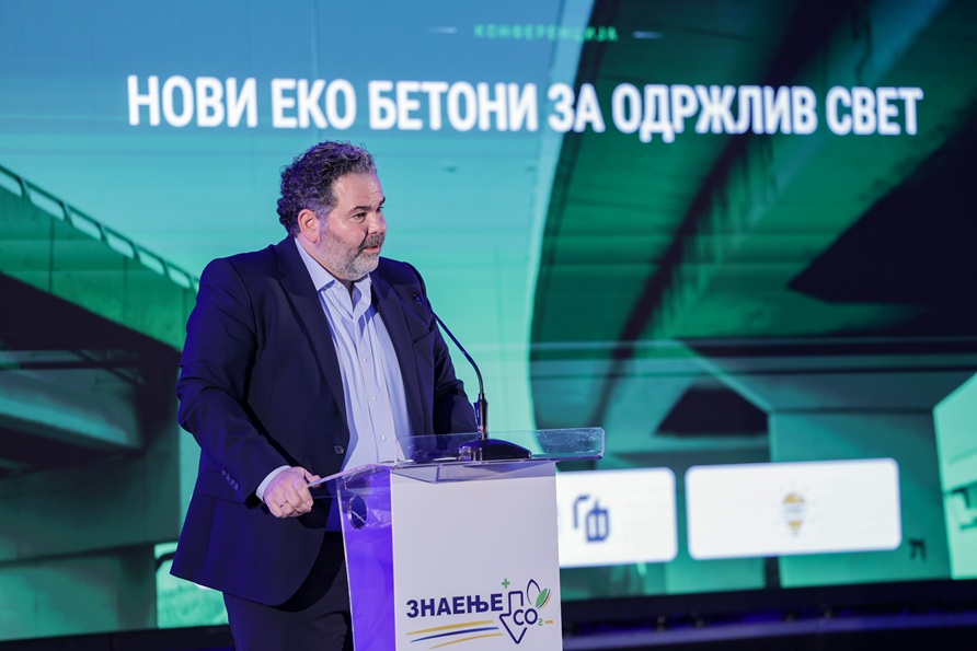 „Живееме во услови на брзи и нагли промени што предизвикува неизвесност. Скоро сите сектори, вклучувајќи го и градежништвото мора да се адаптираат на овие промени. Па оттука, соработката е многу важна, бидејќи ќе ни овозможи заедно да го најдеме најдобриот начин кој ќе гарантира раст и во следниот период. Градежништвото е исправено пред два предизвика. Едниот е поврзан со климатските промени и потребата од поголема имплементација на еколошки производи. Вториот предизвик е поврзан со потребата да не се запоставуваат базичните принципи на градежништвото – стручност, стандарди, свест и совест. За одржливо градежништво се потребни и двата аспекта и уверен сум дека со ваков тип на соработка во голема мерка ќе придонесеме за развој кој ќе се движи во вистинска насока“, истакна деканот на Градежниот факултет при УКИМ, проф. д-р Горан Марковски. За да ја потенцира важноста од стручноста во градежништвото и употребата на квалитетни и еколошки бетони, Марковски стави маска од диносаурус, алудирајќи дека ако не се грижиме за животната средина ќе имаме иста судбината на диносаурусите.
