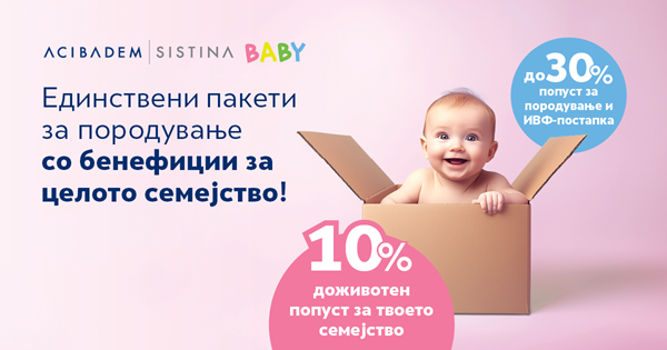 „Трудниците што ќе се породат вторпат во ’Аџибадем Систина’ добиваат 20% намалување на пакетот за породување, додека за трето породување следува 30% попуст. Попустот важи и за прва успешна ИВФ-постапка со која следува намалување на 10% од цената на пакетот за породување. За втора успешна ИВФ-постапка следува 10% на ИВФ-постапката и 20% попуст за породување, за трета постапка паровите добиваат 20% на ИВФ-постапката и 30% попуст на пакетот за породување“, објаснува д-р Гордана Петровска, шеф на Одделот за гинекологија и акушерство.