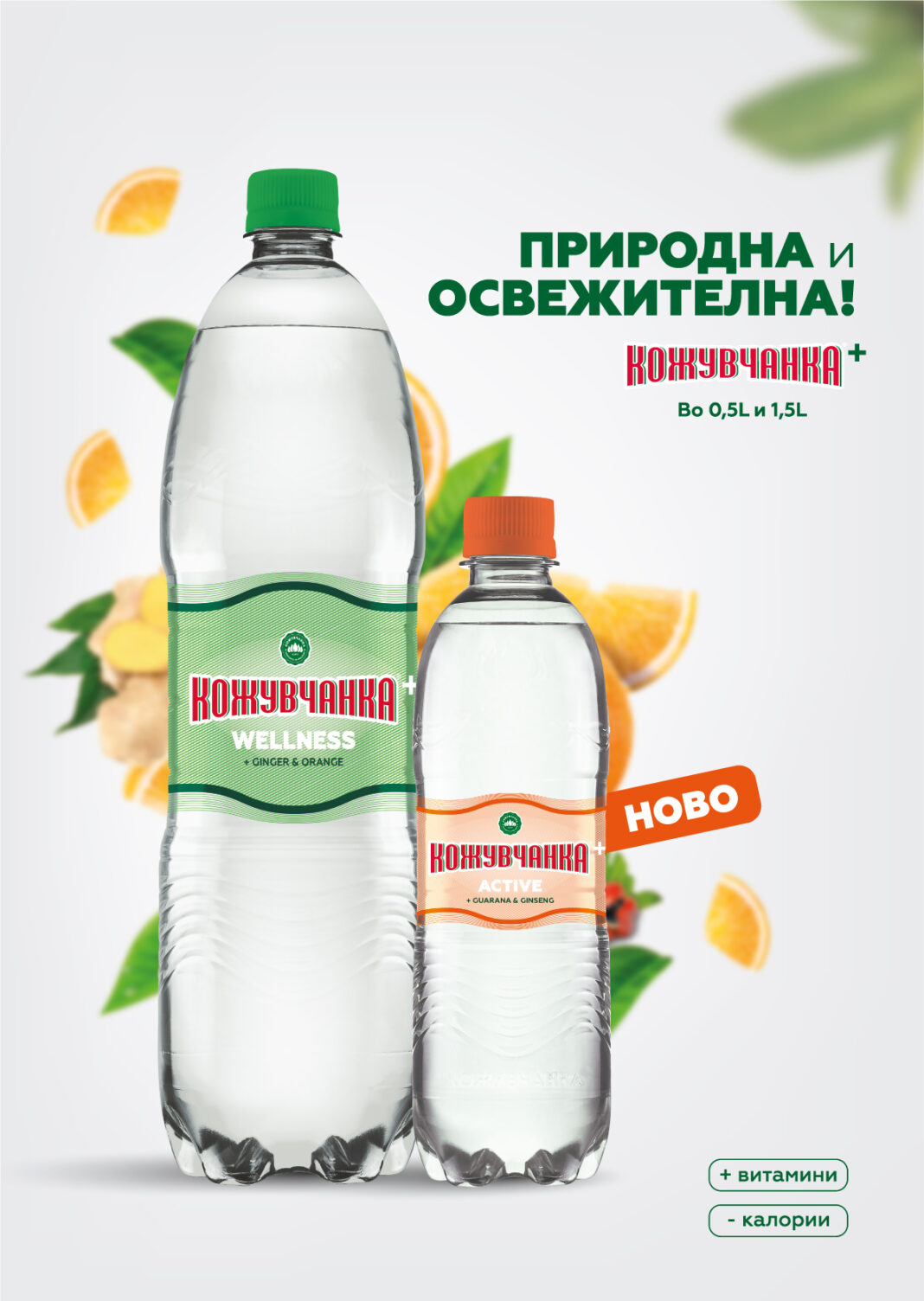 Газираните води Кожувчанка Wellness и Кожувчанка Active може да ги најдете во амбалажа од 0,5 л и 1,5 л погодни за секоја прилика, без разлика дали сакате да се освежите по тренинг или да уживате во текот на денот на работа или дома.