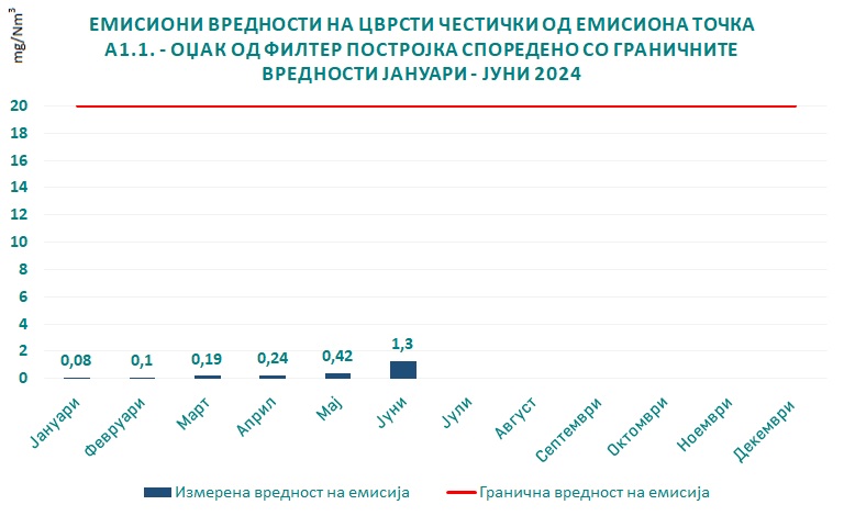 Во прилог на ова соопштение е пресекот на емисионите вредности на цврсти честички од двете мерни точки во периодот од јануари до јуни 2024 година.