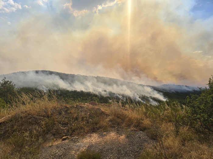 Активен е шумскиот пожар помеѓу селата Негорци и Кованец, Гевгелија, кој гори веќе 4 дена, но е со намален интензитет.