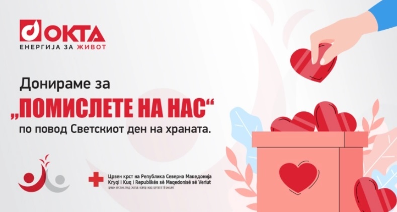 Кампањата „Помислете на нас“ е дел од традиционалното обележување на Светскиот ден на храната, востановен во 1979 година од страна на Организацијата за храна и земјоделство при Обединетите Нации (ФАО), кој ги поттикнува напорите за намалување на гладот и сиромаштијата на глобално ниво. Преку оваа соработка со Црвениот Крст, ОКТА ја покажува својата одговорност и грижа за заедницата во која делува, фокусирајќи се на поддршка на оние на кои им е најпотребна.