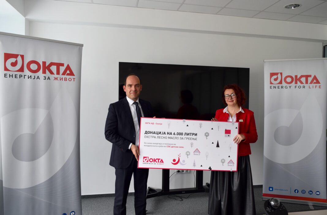 Како дел од својата стратегија за општествена одговорност, ОКТА континуирано ги поддржува ранливите категории во општеството, стремејќи се да биде активен чинител во создавањето на подобри услови за живот во заедницата. Ова е трета година по ред како ОКТА обезбедува гориво за целосно затоплување на една од младинските куќи во СОС Детско село, а во насока на спроведување на општествено одговорните практики оваа соработка ќе продолжи и ќе се прошири со реализација на повеќе значајни донации и одржливи проекти особено во делот на зелената енергија.