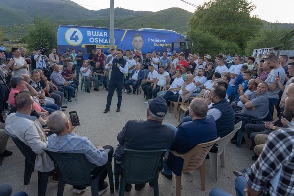 „Јас водам позитивна кампања, караванот на европскиот претседател не остава ниту едно село, не остава ниту едно населено место, а да не го посети за да се договори со граѓаните дека ако ја добијам поддршката до крајот на мандатот сите во својот џеб ќе имаат европски пасоши“, изјави претседателскиот кандидат Бујар Османи при средбата со жителите од крушевското село Алденци.