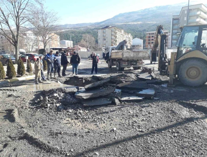 Станува збор за проблем предизвикан поради пукање на цевка од главен цевковод со профил 300 милиметри кај кружниот тек на булеварот Туристичка кај пресекот со улица АСНОМ, во близина на спортскиот центар Билјанини извори.