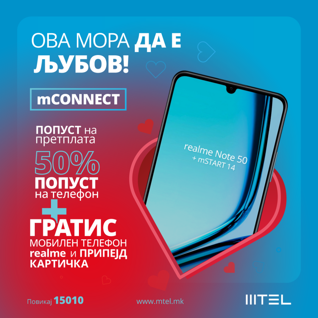 Понудата вклучува одлични попусти и ексклузивни подароци! Промоцијата е достапна до 28 февруари и важи за сите нови mCONNECT договори склучени во овој период. Како дел од оваа промотивна понуда, корисниците добиваат: 10% попуст на mCONNECT S, 15% на mCONNECT M и 20% на mCONNECT L.