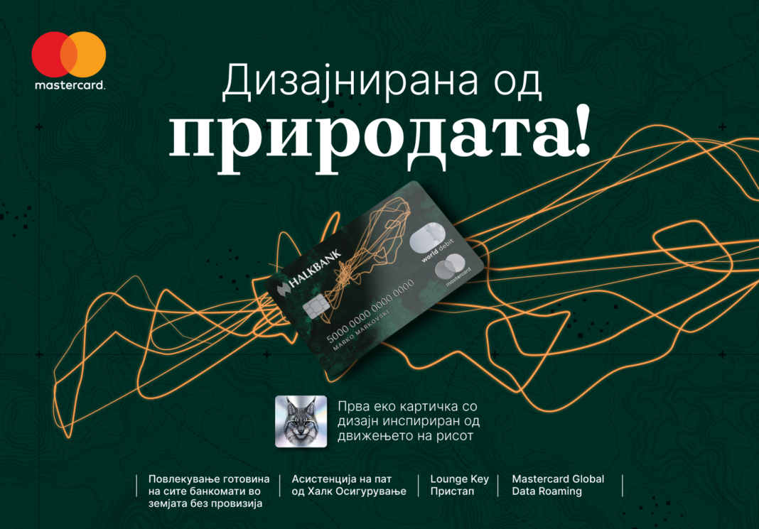 Оваа картичка, која се печати на пластика која се рециклира и е со уникатен дизајн со движењето на Балканскиот рис кој е национален симбол на државата, нуди низа предности и привилегии во земјата и во странство. Па така, сопственикот на ваква картичка добива СМС инфо без надомест, информација за секоја трансакција и состојба на сметка, електронско и мобилно банкарство и истата е без еднократен надомест и без надомст за месечно одржување, како и без надомест за повлекување на средства од сите банкомати во земјава.