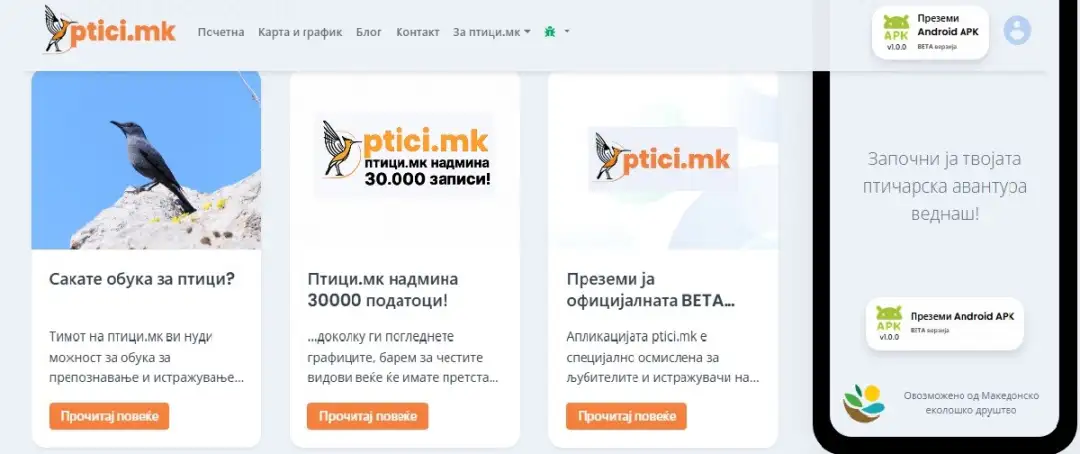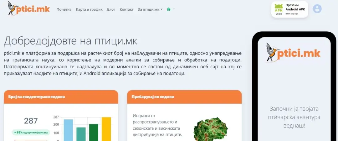 „Апликацијата ptici.mk бележи стабилен раст на корисници, кои секојдневно внесуваат податоци за набљудувани птици од различни локалитети низ Македонија. Иако најголемиот број активни корисници се од Скопје и неговата околина, платформата постепено се користи и во други региони“, објаснува Узунова.